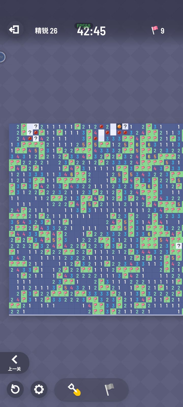 玩到最后全是3选1、2选1的格子,找不到确定是雷的格和确定安全的格,就去挖最上方边缘的格子赌不是雷,挖到第二个爆了