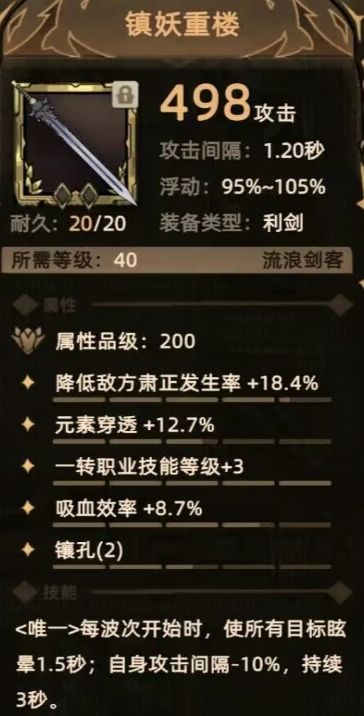 这把剑能在每波开始时眩晕,确保每波开始时安全