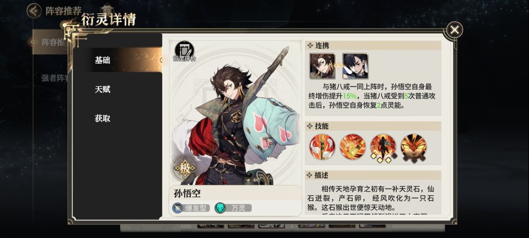 2.孙悟空(C)+猪八戒(T)能够直接凑成连携,孙悟空获得增伤,在猪八戒受击孙悟空恢复灵能;猪八戒获得减伤,与生命值恢复,相当于是输出俞强,前排愈肉,拉高整体队伍攻防能力。