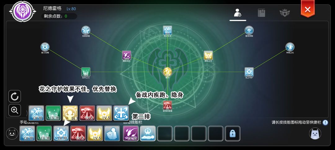 懒惰操作的小伙伴,一排技能基本能满足66需求,个人的习惯按照常见技能组合顺序、使用频次排列。技能熟悉后,可以考虑在第二排技能加入光比(需插卡)、备战、疾跑、隐身等技能。