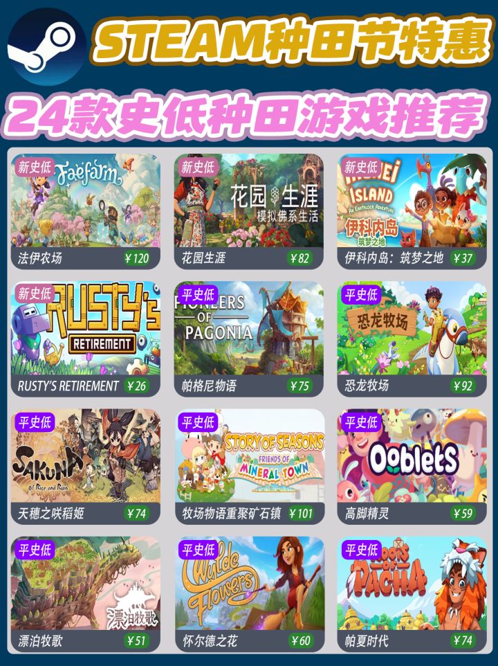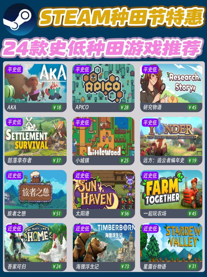 Steam农场管理节开始啦,24款史低种田游戏打折中~