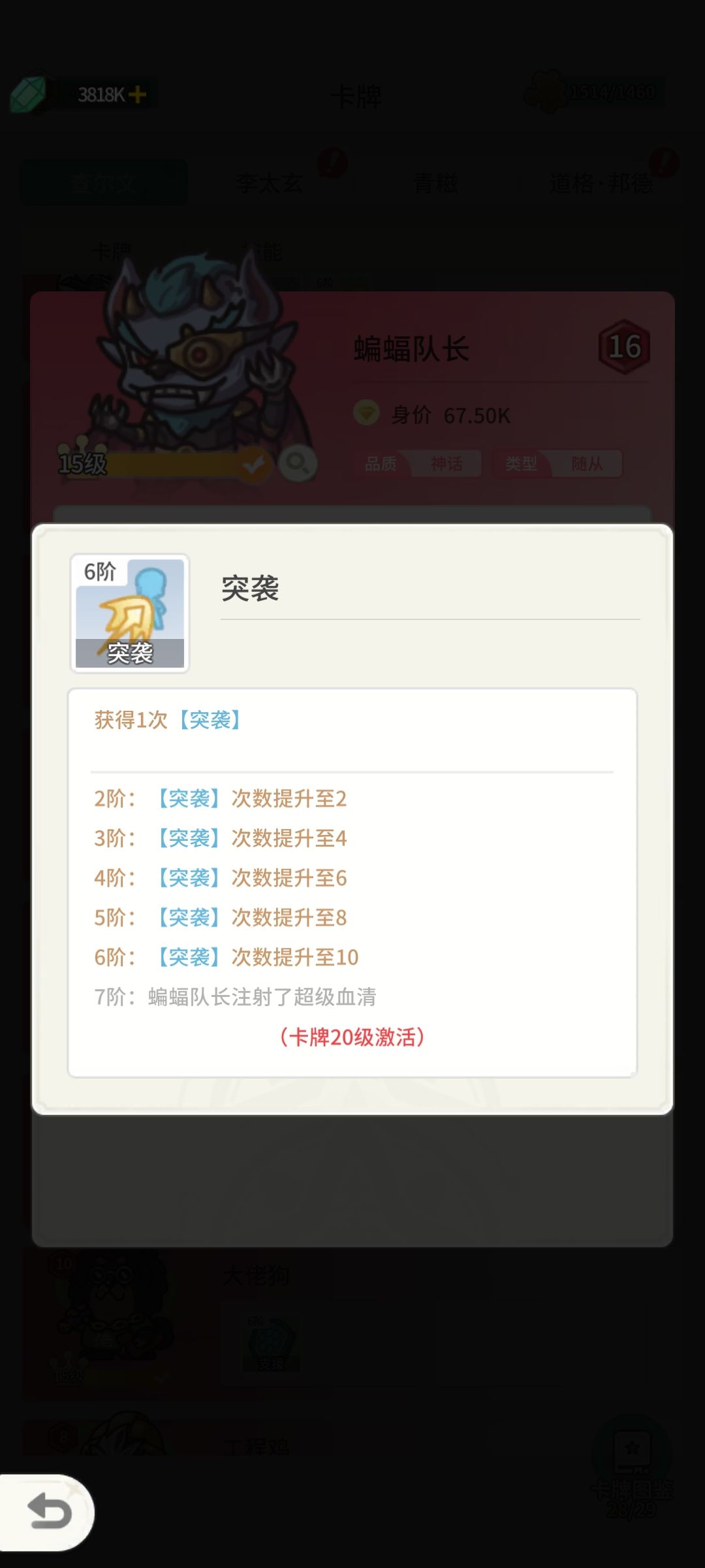 这两个技能非常的给力突袭再搭配守护与量子盾情况下基本上可以秒掉一个随从,还能快速召唤具有守护的蝙蝠