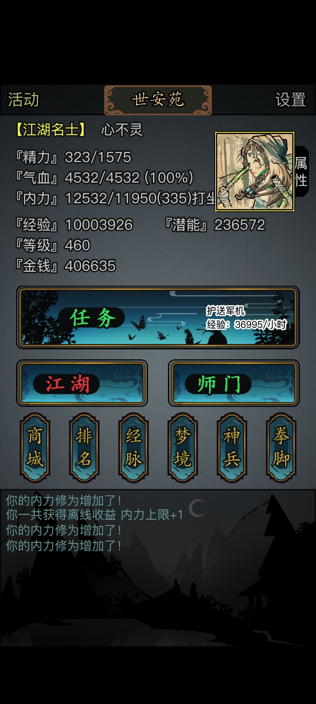 初级知识(一):人物属性篇进入游戏以后可以先点开头像,来了解我们的初始属性这边由于我是武林世家开局,所以福源是24上限,后悟性10即可,如果是孤儿开局,需要刷出福源27开局,然后让臂力和根骨尽可能...