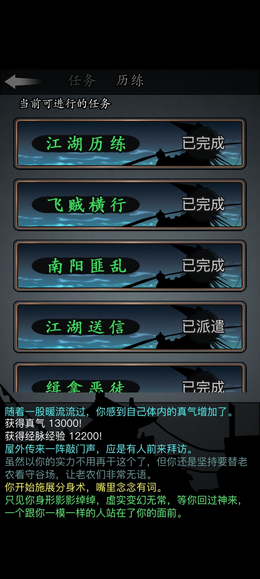 初级知识(二):日常任务篇江湖历练:这是一周刷新一次的任务,每次完成可以获得历练宝箱,历练宝箱里面运气好可以开出醉梦生,顶级门派残页之类不错的物品飞贼横行:可以获得大量经验,飞贼包裹,以及神兵淬炼...