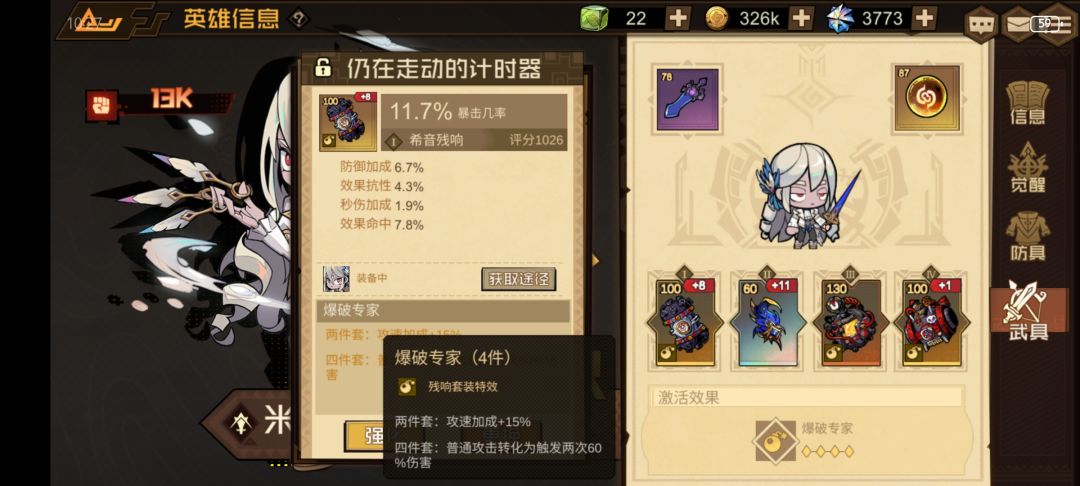 英雄个人战力英雄个人战力:武器、觉醒(英雄碎片)、防具、残响、秘石