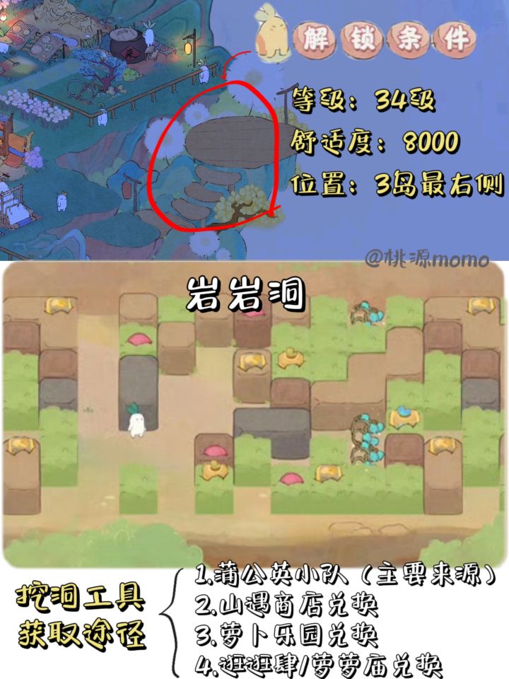 萝萝古镇解锁条件:等级 34、舒适度8000