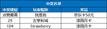 2、在符合活动的留言中,随机抽取两个楼层送出漆园月卡一张;
