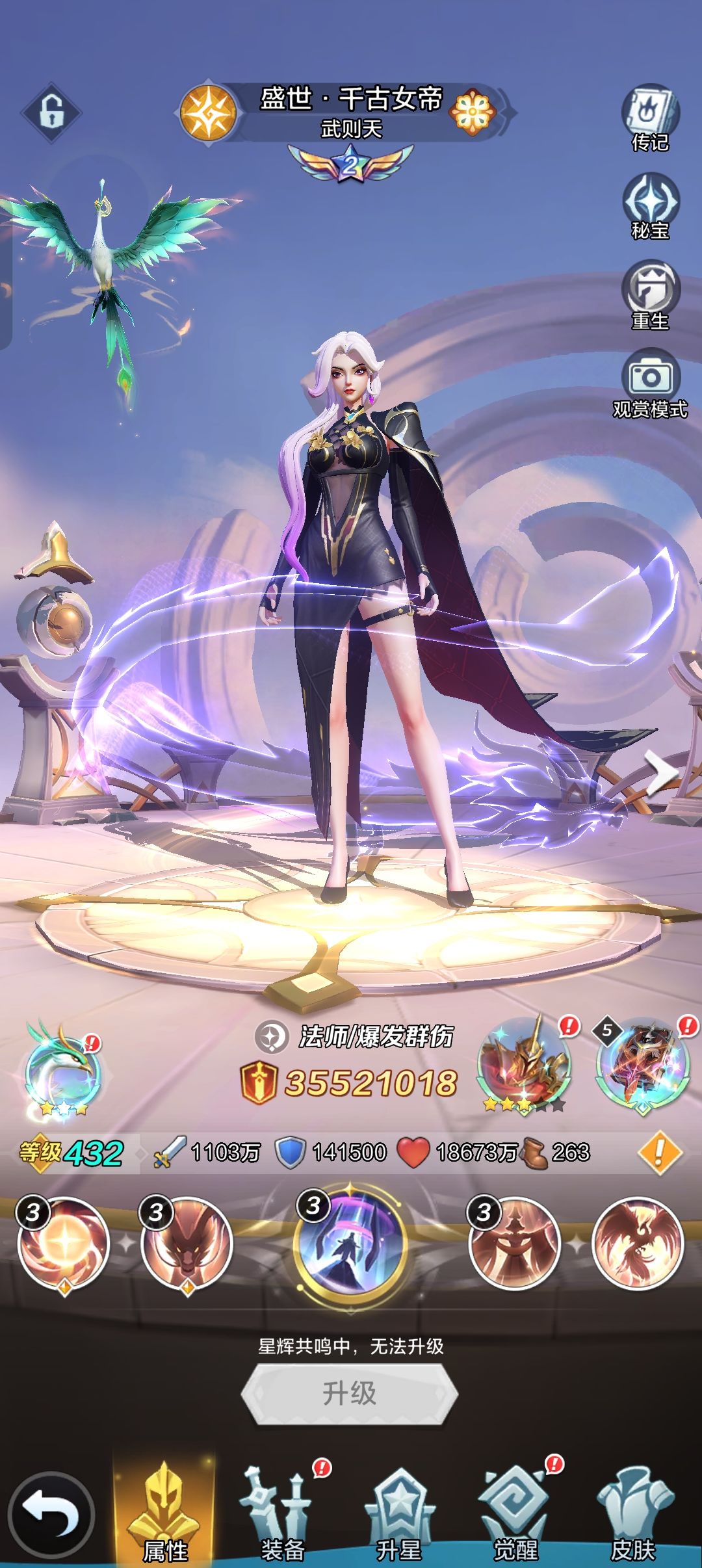 目前上古目前最后的皮肤,武则天。也是个人目前的总c,后面的都是要花大价钱,氪金培养的了。
