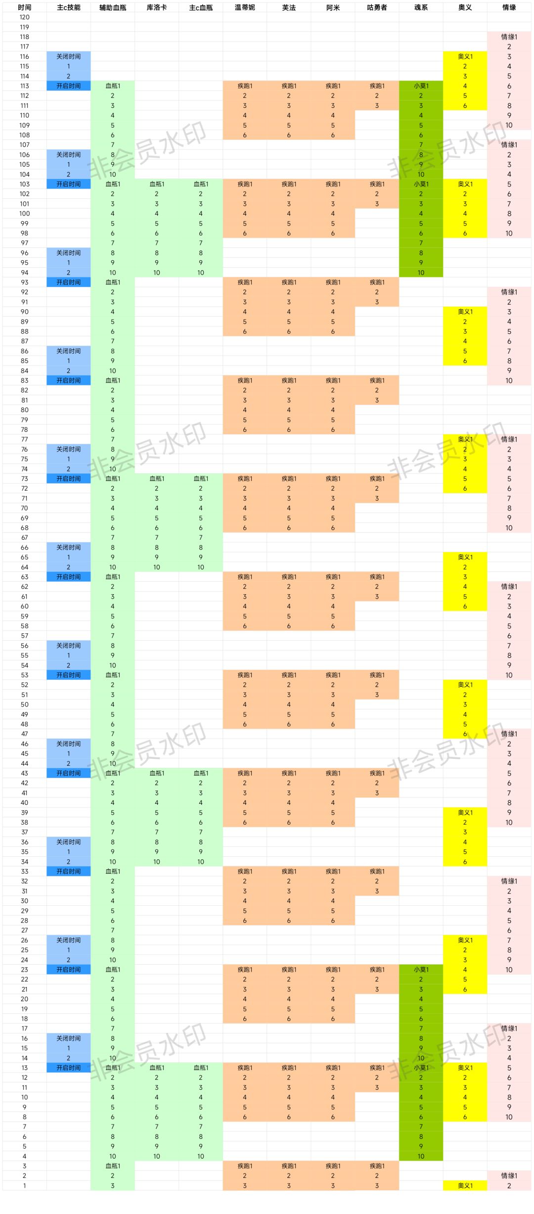 ③第二次血瓶倒计时由5→4的瞬间,关闭橙色技能,等血瓶、疾跑全开了再重新开启大招(不出意外的话,奥义也是这个时间点出来)