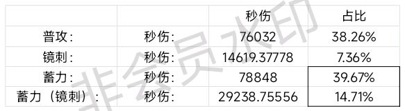 此部分的伤害,占比约为39.67+14.71=54.38%,若是配合上各种爆发性增益buff(如:血瓶、疾跑、奥义、魂系、魂力等),输出提升也算可观