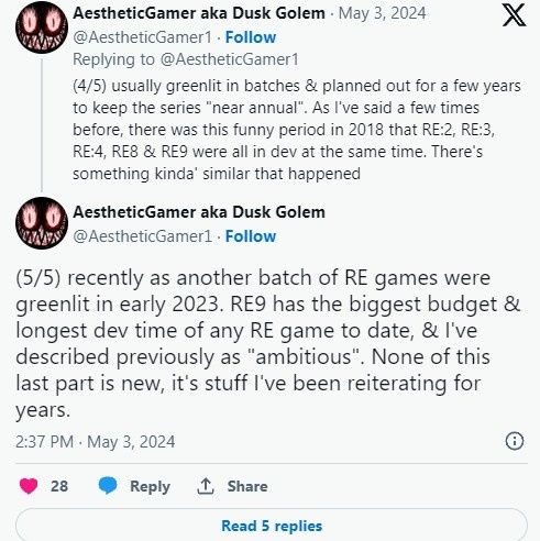 【传闻】据知名舅舅党Dusk Golem爆料称,《生化危机9》应该很快就会公布,并将于明年发布。游戏开发周期大约为7年,若之前得到的信息准确的话可能会是1月发布。不过这个时间只是自己所听到的预计窗口期,无法坐实。