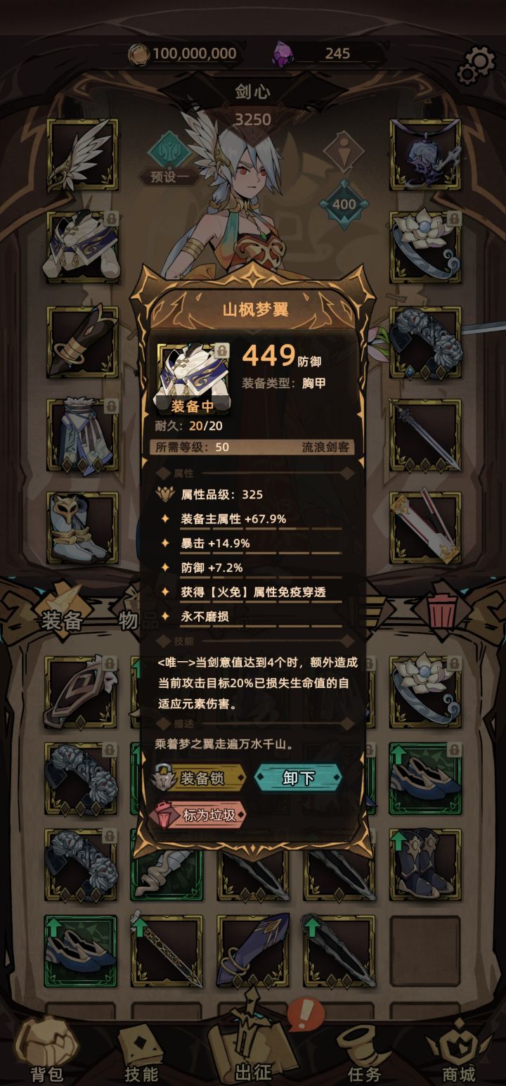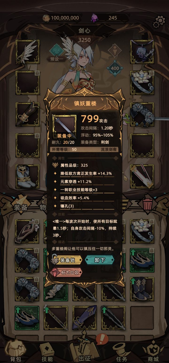 衣服和副手配合头 后期塔怪物血量高补刀伤害很可观