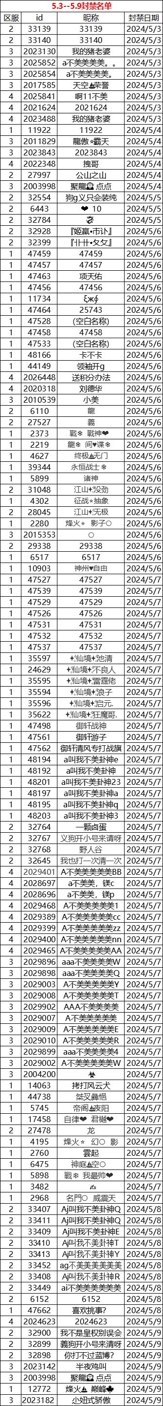 《战警:大国崛起》2024年5.3--5.9日封禁名单