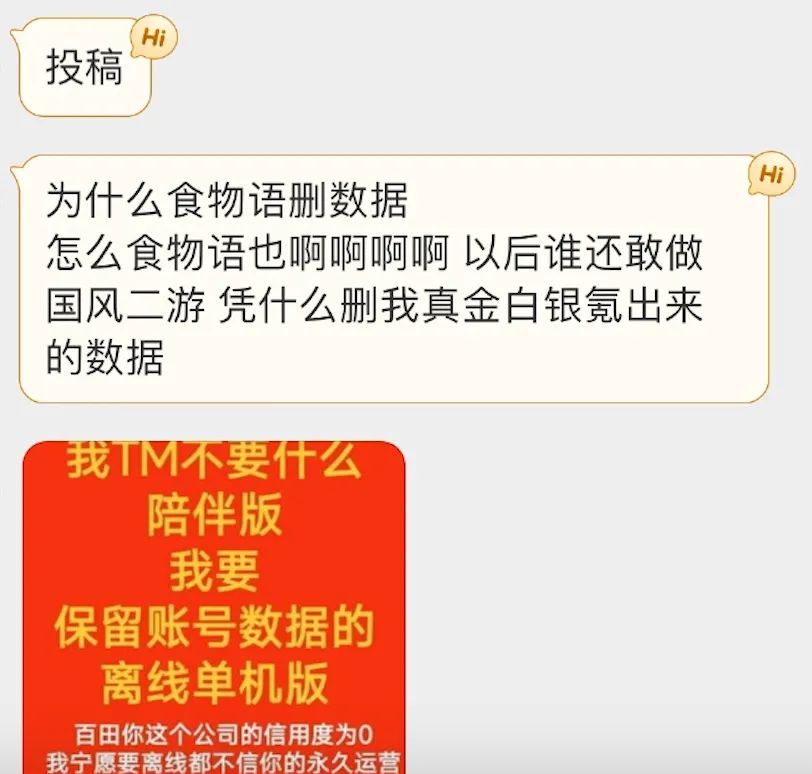 另一方面,《食物语陪伴版》并不会继承玩家原来的账号进度,手游本身主打的就是“陪伴”,这种类似删号重练的选择,相当于是把原本投入心血的号给扬了,再从零“克隆”一个出来,部分玩家自然很难接受。