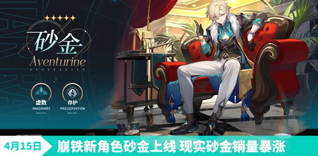 4月中旬,《崩坏:星穹铁道》新角色砂金上线,有意思的是,看完游戏剧情的玩家,还在现实里购买砂金制作周边,在4月一度带动砂金销量。
