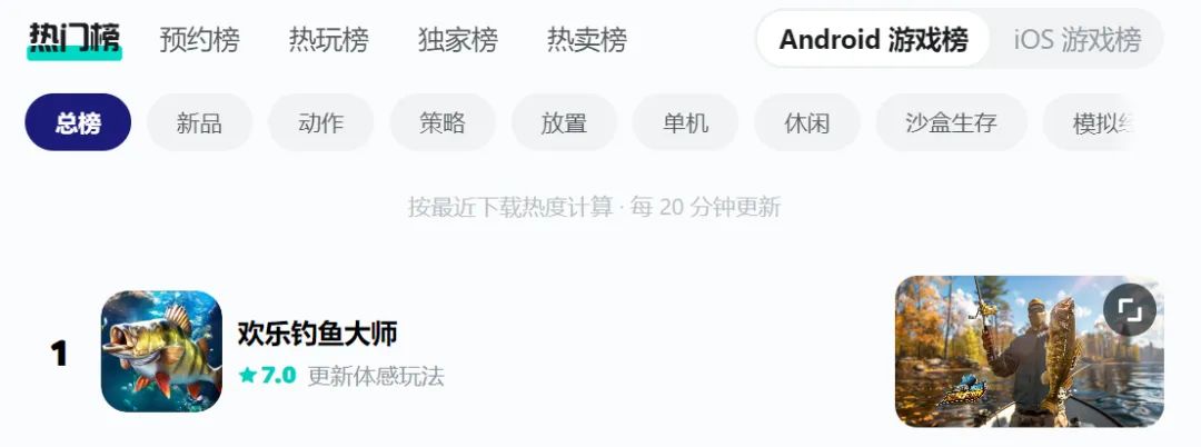 各种各样的人拿着手机统一做着神秘动作,像某种仪式,也像原神启动。实际上他们玩的是《欢乐钓鱼大师》,一款钓鱼游戏。在TapTap,这游戏在热门榜首呆了快半个月。