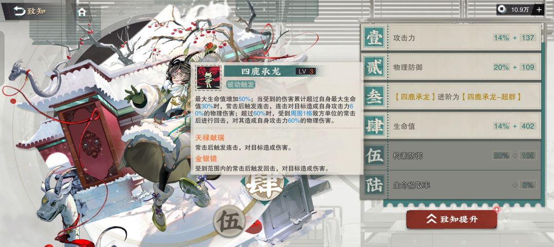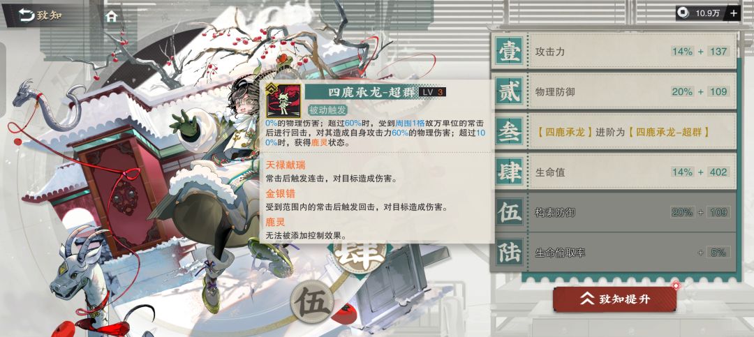 四鹿承龙-超群在上面的基础上多了一个累计超过100%会有一个免控效果。