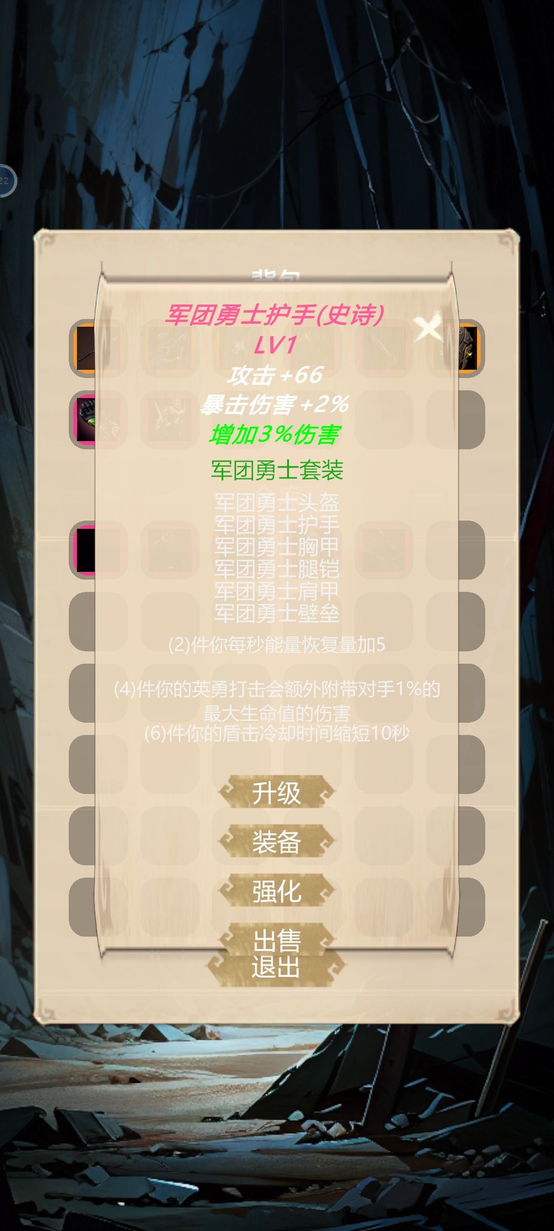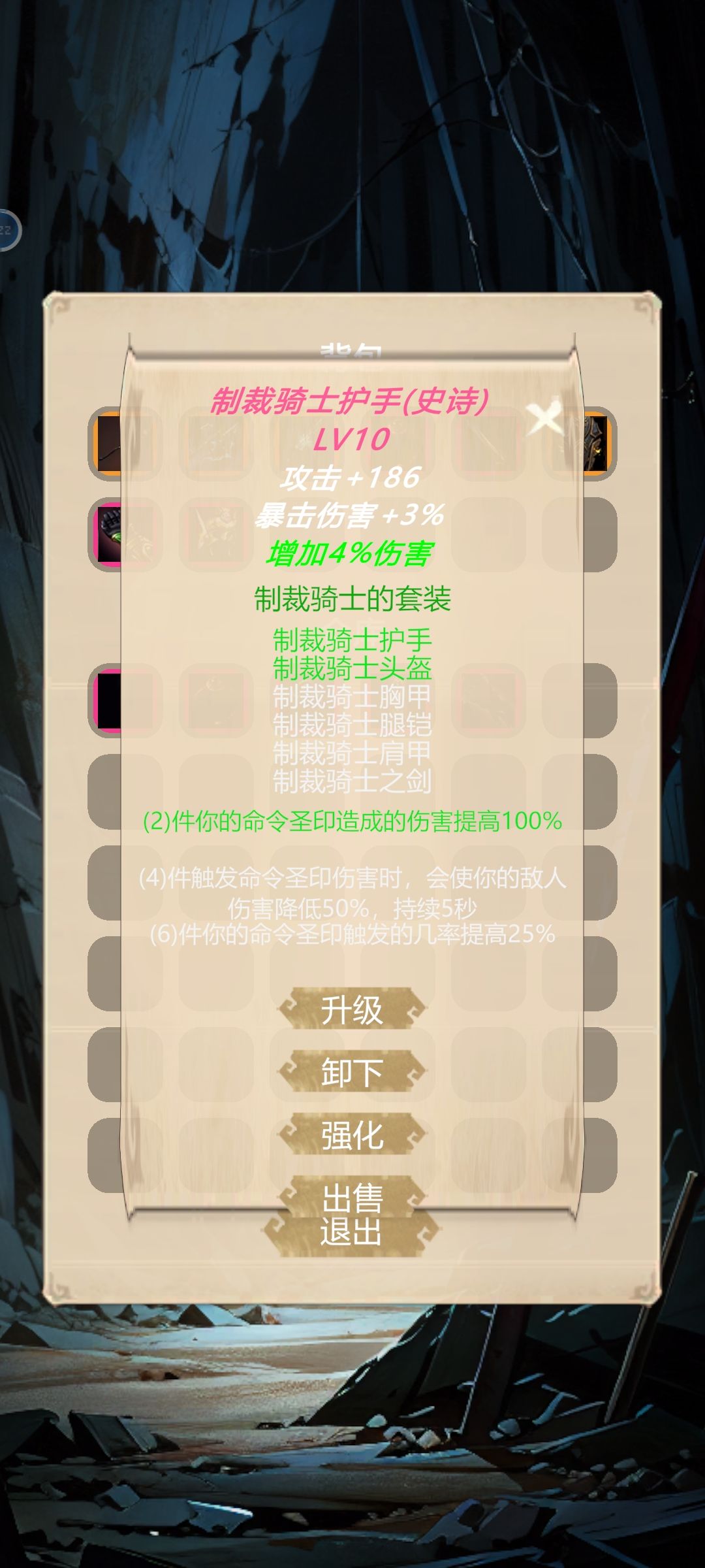 刷关卡图,意外刷到几件攻略里面没有的装备,说一下出处,圣骑士套貌似是在25出,战士套是在30关有概率掉,应该还有法师套,到时候再看。