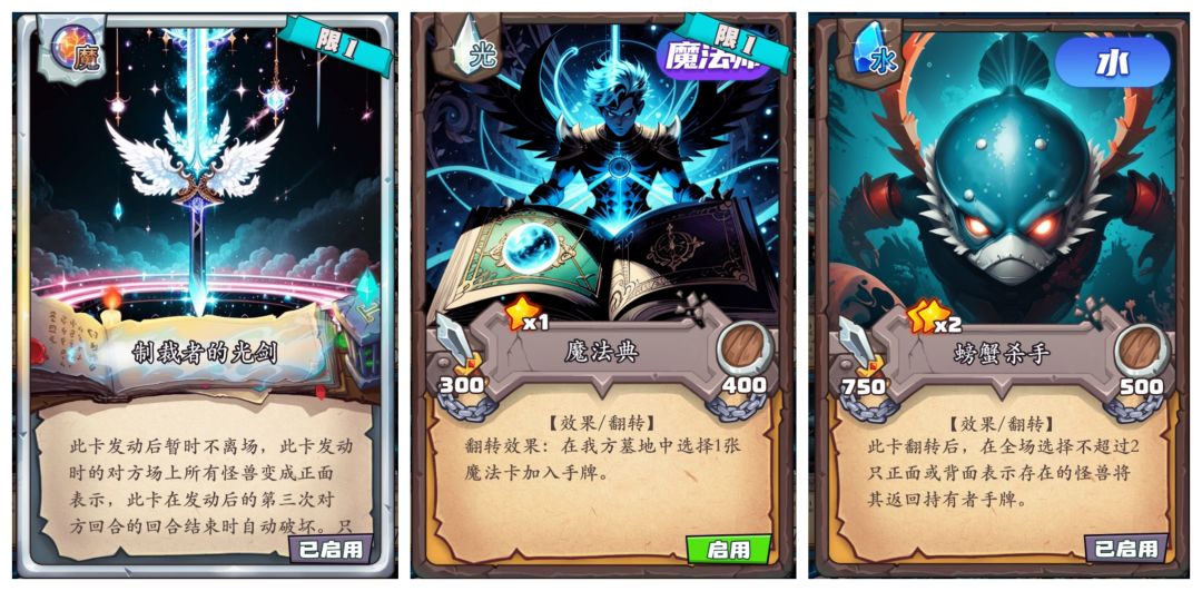 先放光剑禁止攻击3回合,在此期间盖魔法典和螃蟹。