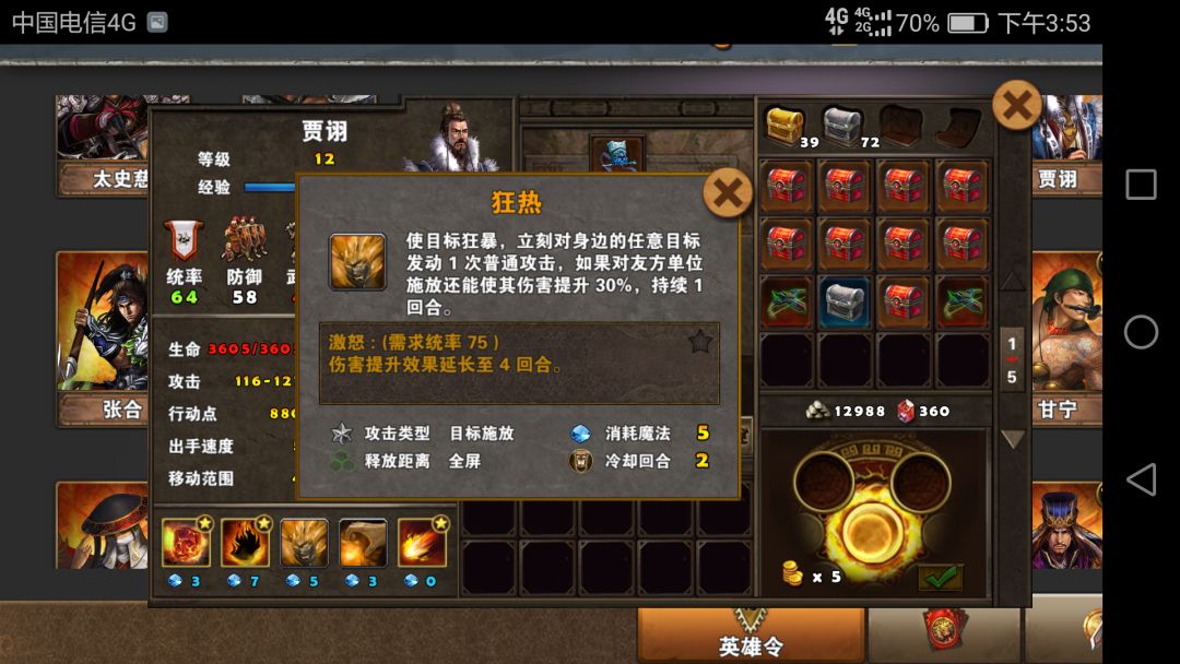 狂热复制打两下,用兵或将输出,也可以作为一个小buf使用。这让贾诩在战场里更加灵活多变,出其不意。像龙的双咬,凤凰双喷,无当连射,黑风双煞触发时的高攻打击等等,用的巧时非常惊艳,甚至改变战局的走向。