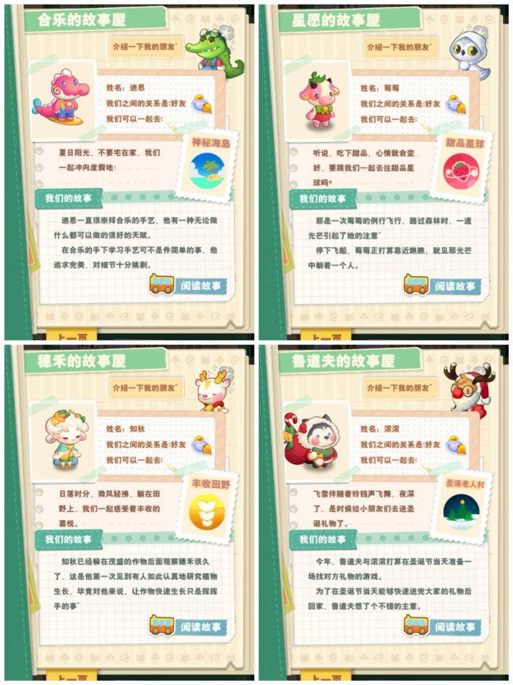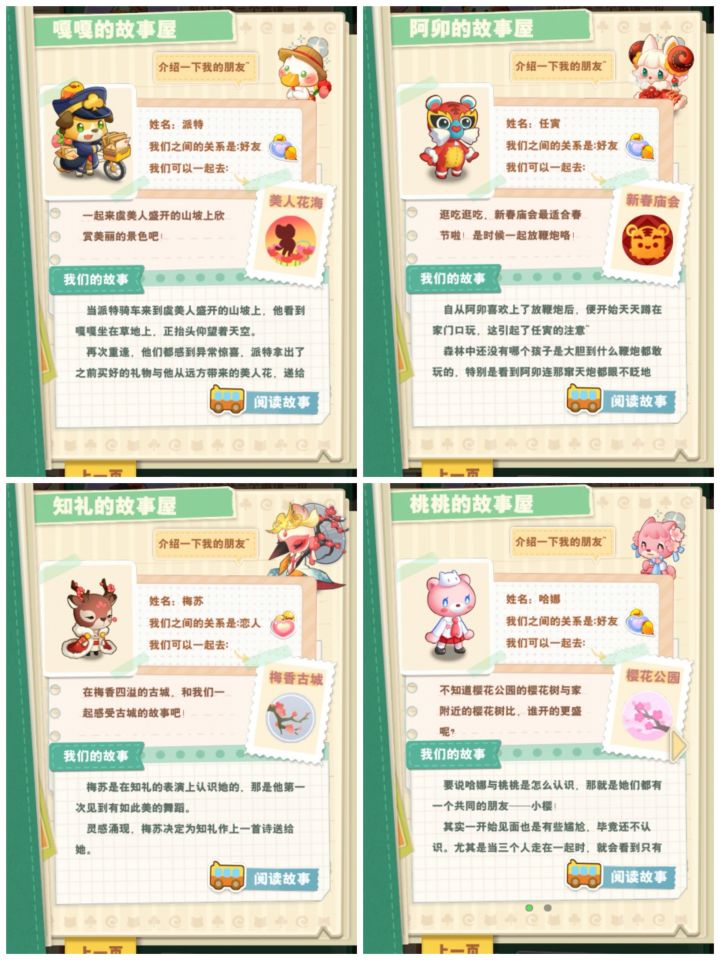 玩到目前为止获得的动物,可参考。旅游时候可以组团的动物羁绊,可额外获得奖励。