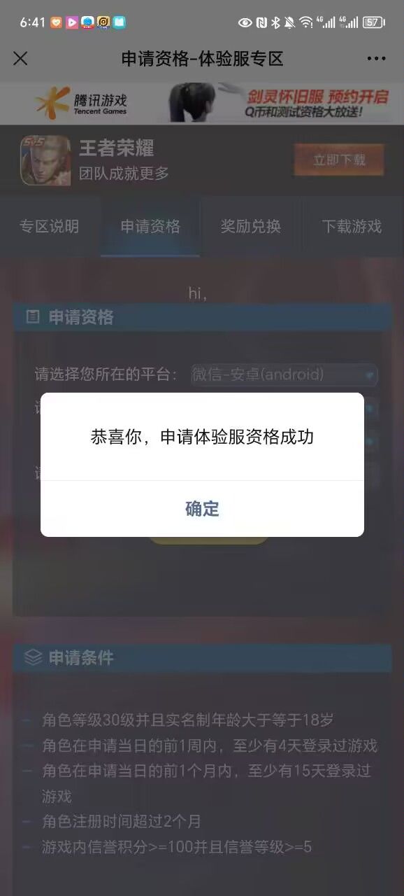 王者荣耀官网—体验专区—申请资格—填写信息后点击“提交申请”
