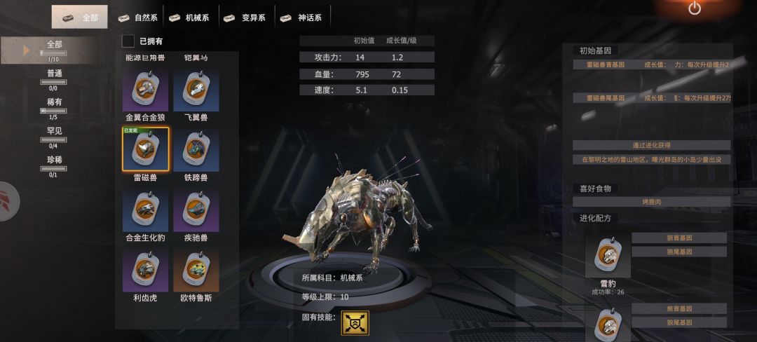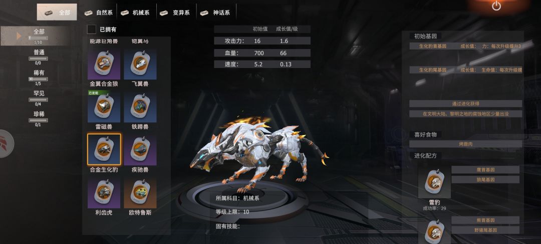 合成合金生花豹的合成基因怎么只能合成雷磁兽