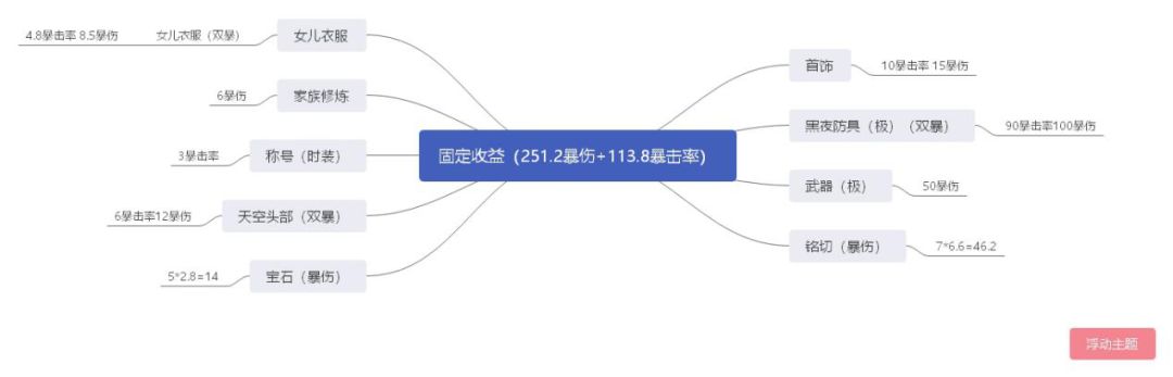 1、固定双暴固定收益是较为容易达到的暴击打造方式,而且与其他部位一般无其他冲突,可以看到,固定收益部分带到黑夜外围公式中得到的数值为:113.8%/7+251.2%/15≈33%。已经非常接近黑夜的阈值。