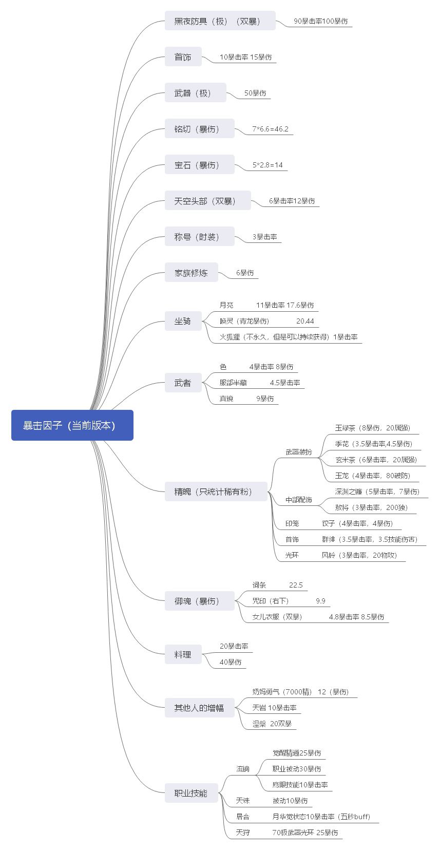 其实大部分的暴击因子我们在日常游戏里都了解了,但是不系统,在这里我用上图为小伙伴们梳理一下。