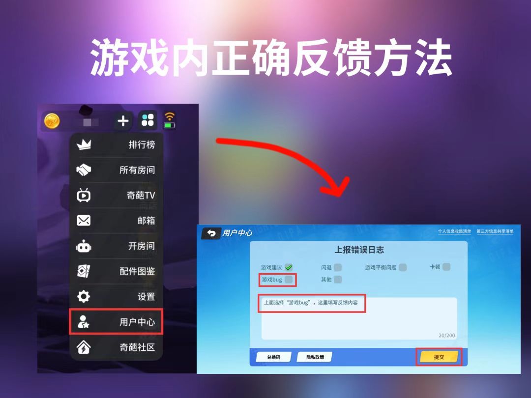 ②游戏内,通过下图方法反馈:
