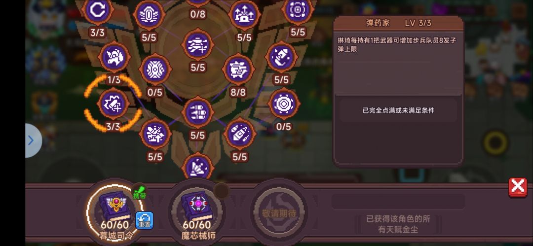 角色天赋:天赋一。弹药家、枪林弹雨必满,其他随意。