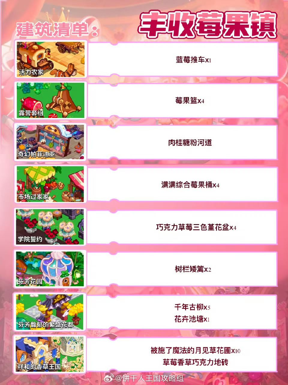 饼干王国综合莓果大丰收,花香四溢,韵味高雅,甜感悠长。饼干相聚在莓果欧风凉亭前的广场一起品尝酸酸甜甜的莓果,真的太幸福甜蜜了