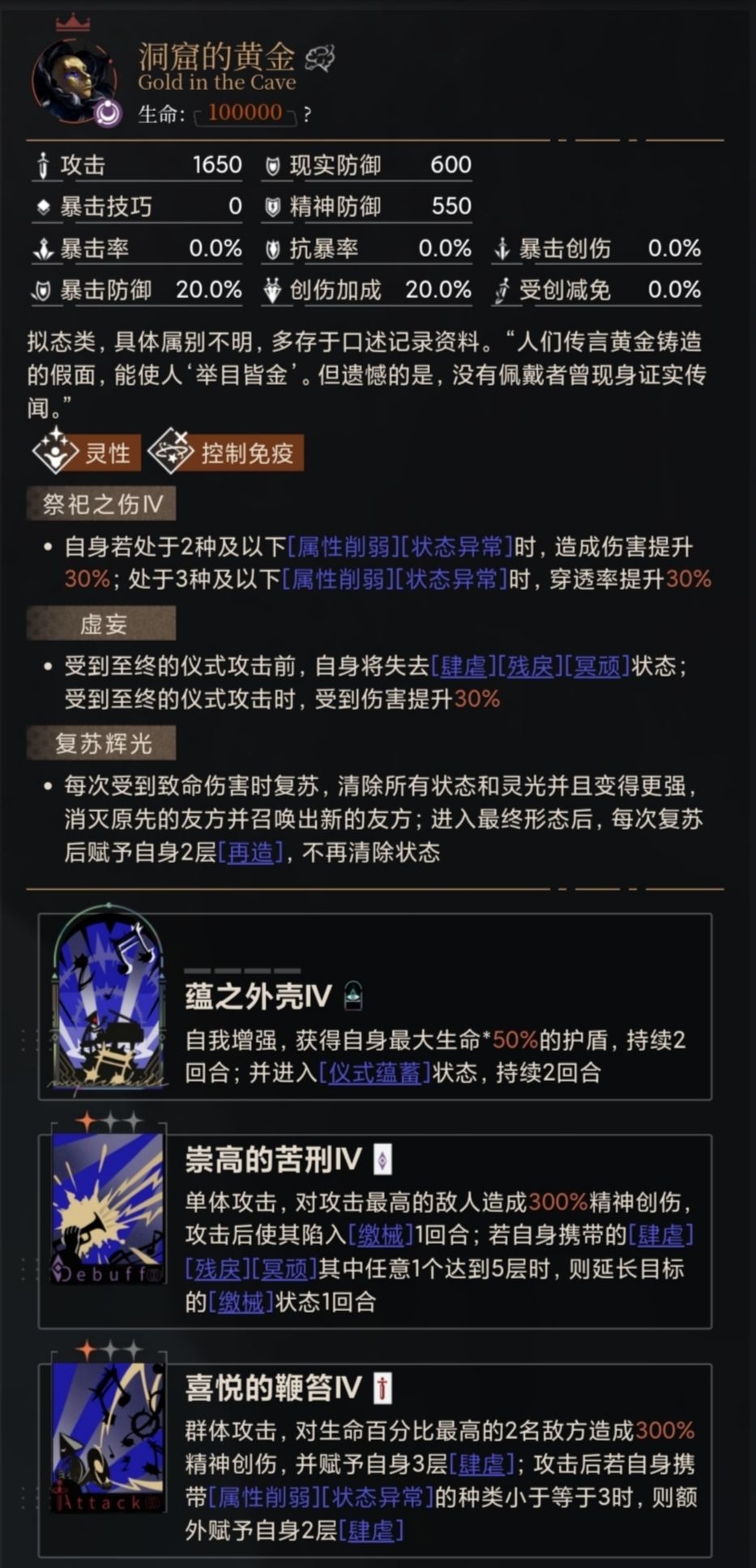 🔥〖我方〗:回合结束时,若任意1名敌方处于[控制]或2种及以上[属性削弱][状态异常],使自身激情+1,受创回复提升20%,持续2回合