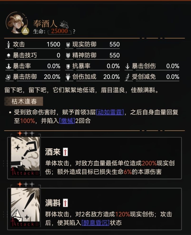 一个不留神就会忘记“放牧人”的“嘲讽”状态,很容易就导致层数没算好,然后……游戏结束,最次也会减员。再者是BOSS的攻击太高了,旁边还有两个怪,在“再造”叠加起来后,仅仅是依靠平A,就能很轻松地对我方造成致命打击,生存压力巨大。