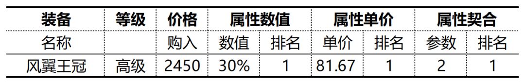 高级装备中,仅有【风翼王冠】提供30%每5秒回血属性,属性单价为81.67/1%。