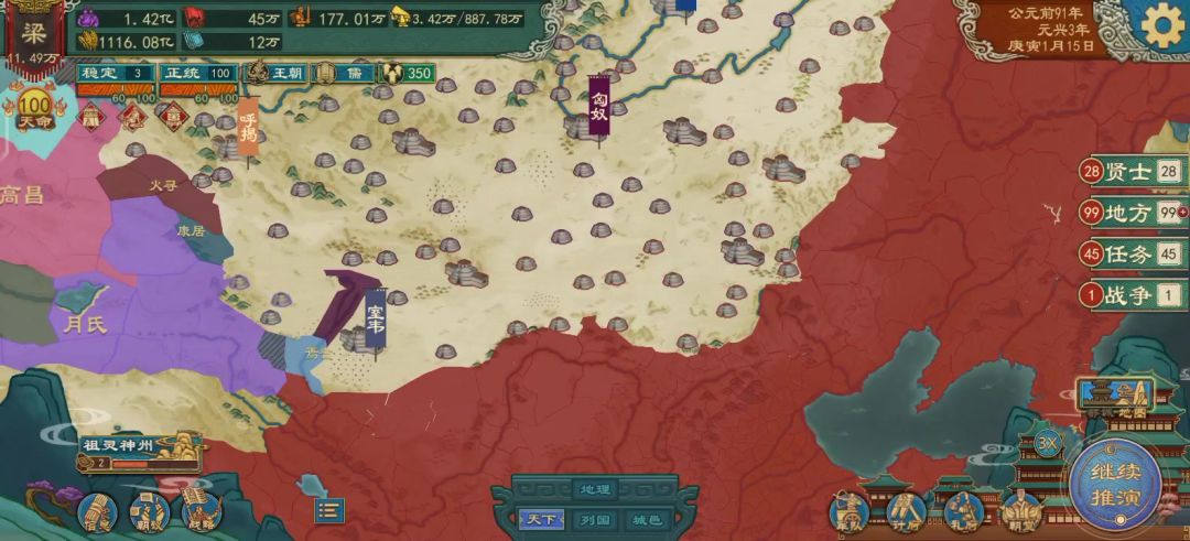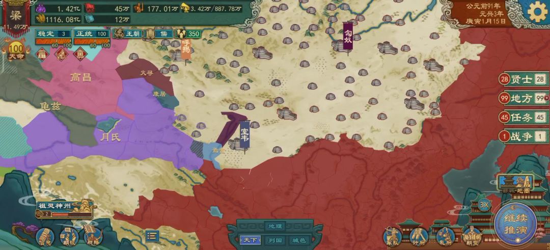 之后打下北漠的土地我们选择“容后再议”,再将北漠地区的土地赏赐给卿室