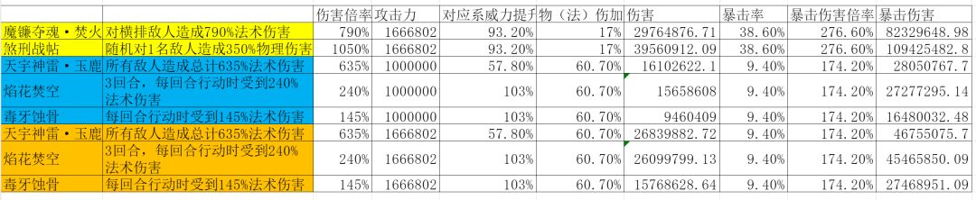 我们抛开减暴防御这些,上图是盟里一个天火剑的小伙伴,攻击力是166万,变异火灵根,火系威力93%,爆伤276%,他的骨头是8千万,煞刑是1亿,这种情况下基本后排是瞬秒的,而在理想状态下,我需要带无常印叠到4~5个deubuff引爆才能达到相同伤害,所以如果喜欢打架的,还是选剑修、刀修和小龙人吧。