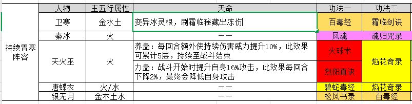 三、队友及功法搭配