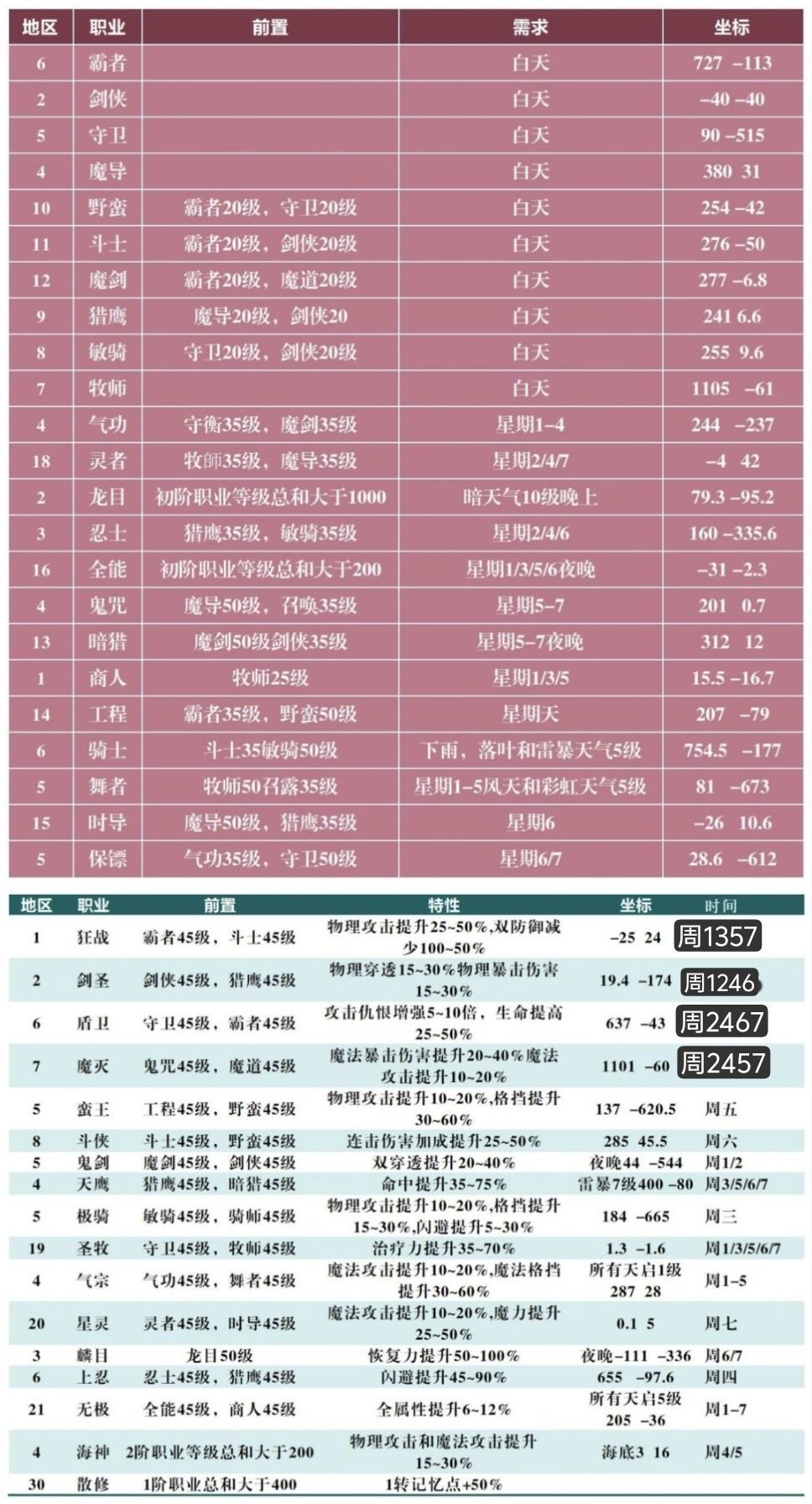 1.官方自身对各职业的时间位置要求不准确。
