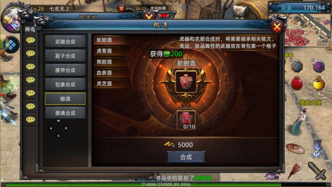 又是兑换使者的活儿!找到他后选择锻造合成,再选酿酒,这样又可以增加一大笔经验值。