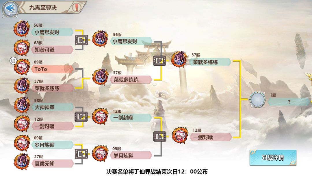 *仙界战结算后,排名位于前16的玩家就获得了参加九霄至尊决的资格。
