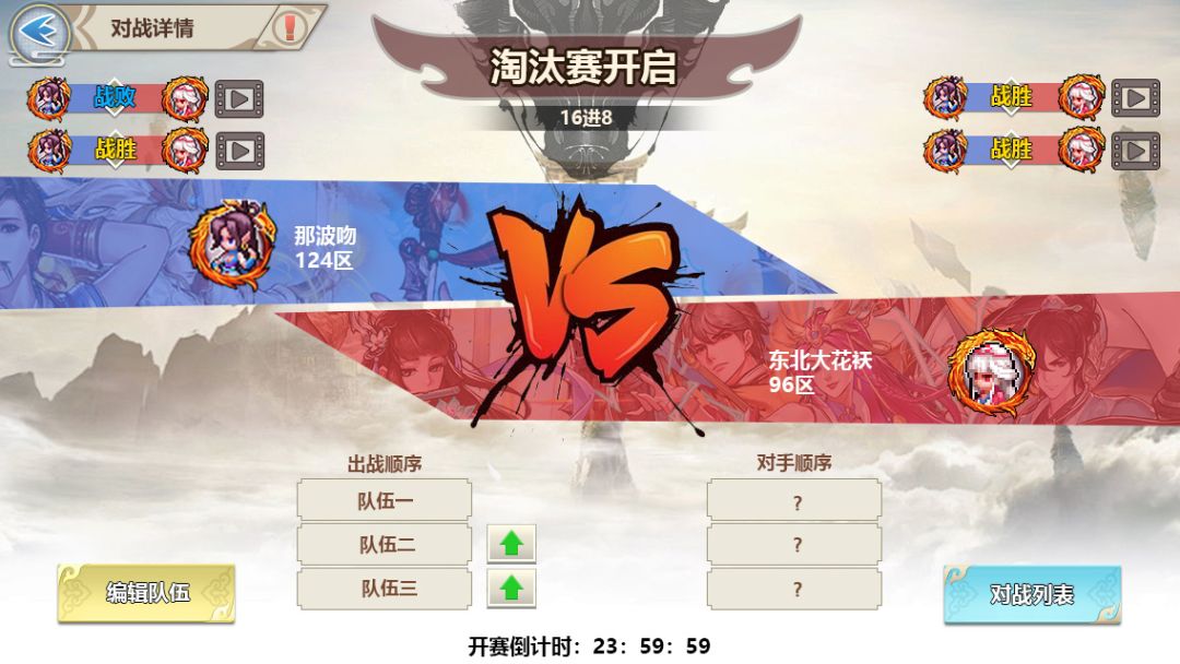 *玩家需要提前设置好自己的三组对战的阵容,伙伴不可重复。一旦开始淘汰赛,则无法再进行队伍编辑。