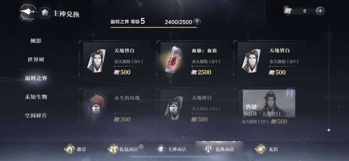 2.每一期坍塌世界结束后,坍塌之界商店等级重置,旧日影像转化为影像余烬,可购买低级血脉培养材料,在商店到达对应等级后,可购买过往赛季侧影和个性化道具。