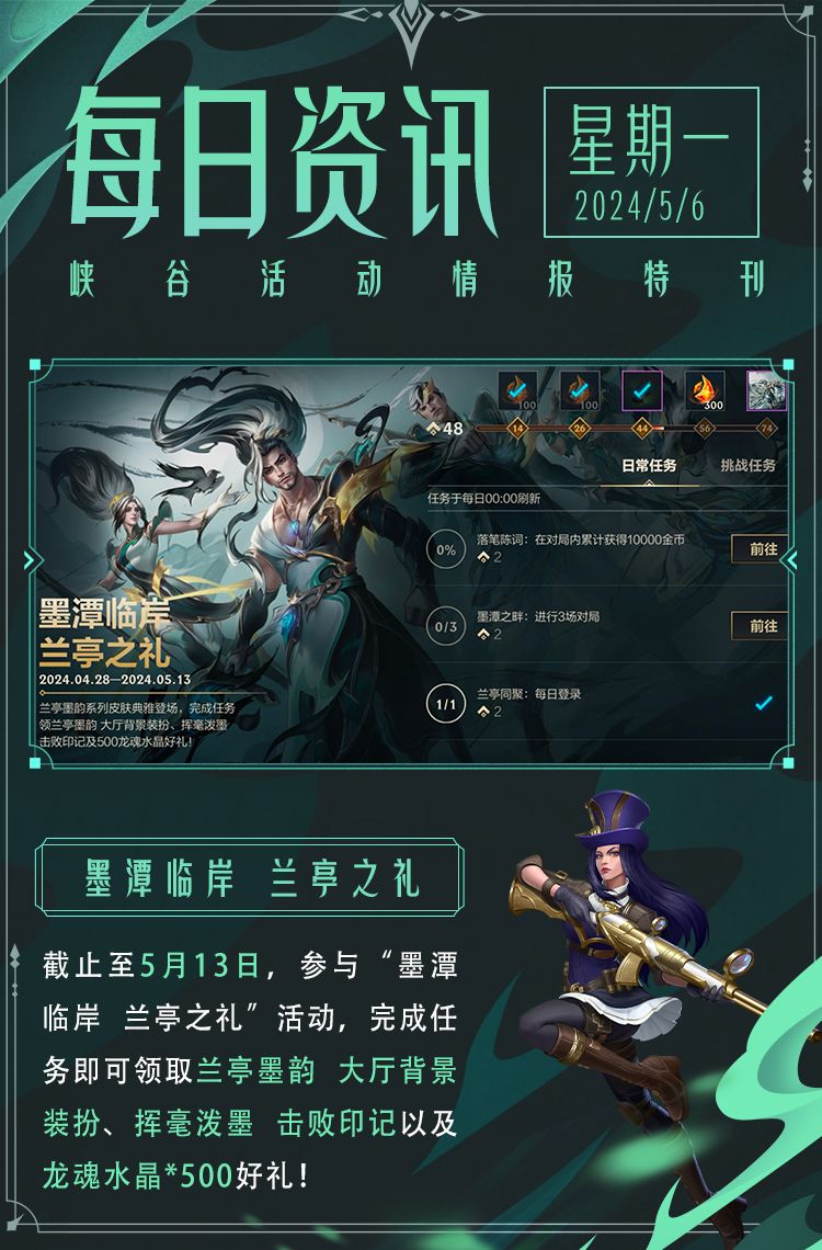 奖励:兰亭墨韵 大厅背景装扮,挥毫泼墨 击败印记,龙魂水晶*500