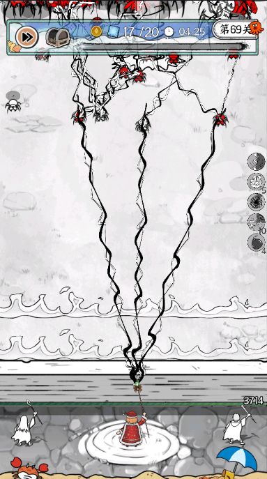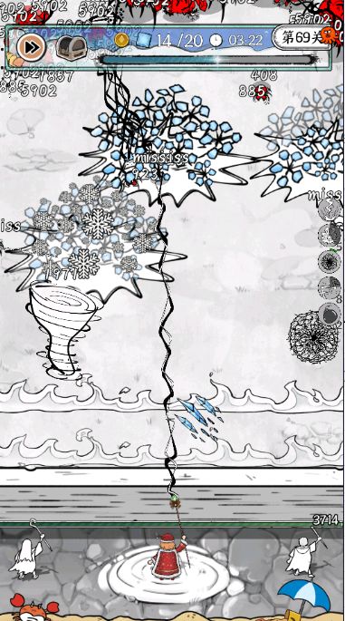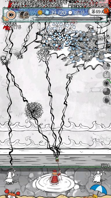 自从上周2500战力5800城墙过了68关后,进入到69关后发现熟悉的蜘蛛精带着冰蹲蹲又回来了,外加一些前期的炮灰风油精,但这关出怪比之前更快更频繁,压力明显是更大的,如果不能抢开局在前五波伤害200%的BUFF下把电流传导迅速撸出来,第6波开始就会比较难顶,一般撑到第10波由于清怪不及时也会很容易挂,所以这关我是重开了十多次拿到了前几波的“学习闪电链+闪电链麻痹+闪电链弹射+闪电链伤害=电流传导”然后从第6波以后才开始补“连环冰霜+冰冻时间+冰冻伤害+冰霜放大”,前十波基本盘就稳住了,后十波基本就是挂机打酱油,技能方面可以补一些闪电链额外目标、额外弹射、闪电爆炸等,怪物普遍连半场都过不来,问题不大。(学榴弹属于系统强制选项随便点的)