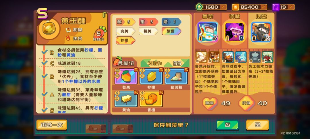 新出的食谱真的难搞,个人感觉最好出S的就是水晶牛肉沙拉。。。做黄玉酥的话梦魇得拉满级,顺带一提,柑橘香气可以用柠檬香代替,以前看到别人说,亲测了一下发现真的可以,就像图里的黑曜石蛋糕那样