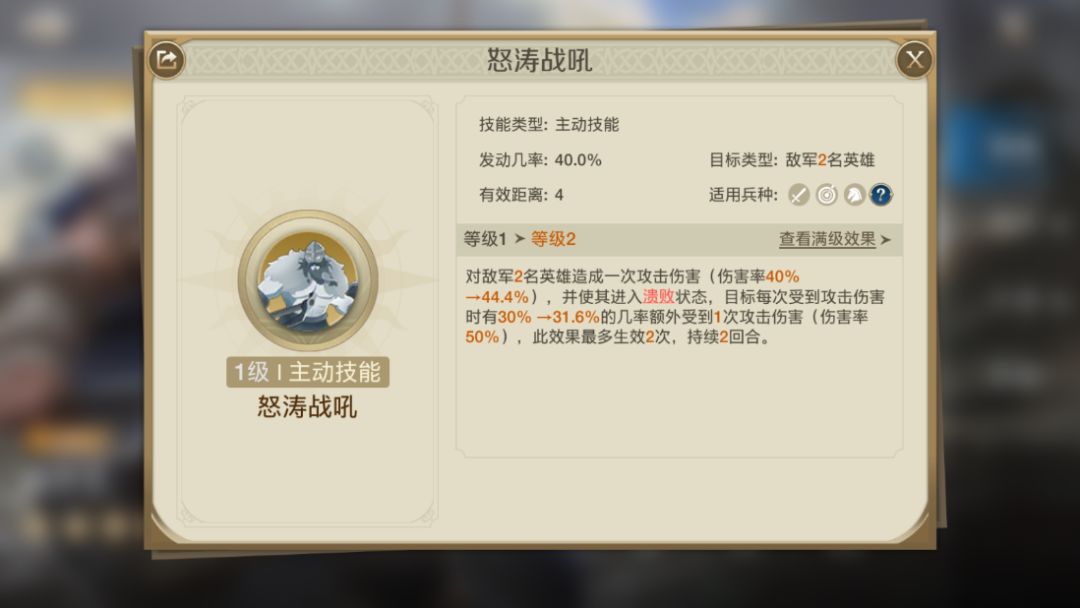 这两个技能都是可以从四星英雄身上获取,获取难度较低,而且战嚎以及击破提供的减低敌人伤攻击、防御属性以及是敌人进入负伤状态的debuff很适合蓝牙王,更别提本身的技能伤害也不弱。