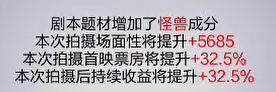 ①剧本。剧本与艺人是高度相关的,剧本的类型、标签体系与艺人的“擅长剧本”、“擅长角色”体系是对应的。也就是说,当剧本的类型和标签,与艺人的擅长对应得越多,后面的票房加成就会越高。例如视频的“人与海与岛”(原型是一出好戏),类型是现代片,标签有伦理、复仇、校园(这个是用五星剧本章节精编出来的,获取方式一般有拍摄五星剧本、达到拍摄目标时获得,还可以活动兑换),从视频中“艺人对剧本和角色的发挥”,可以看到,这套艺人阵容的剧本契合和角色契合程度。