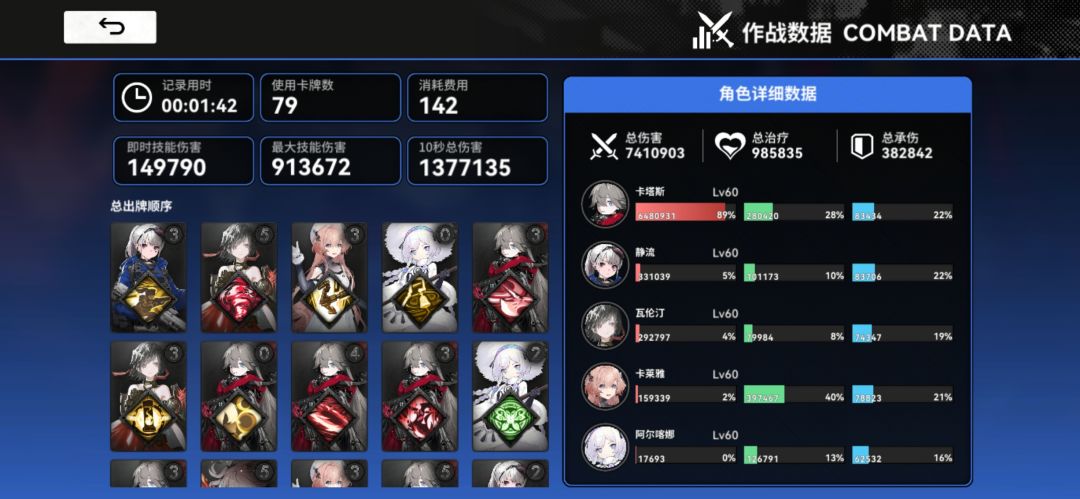 打日常到2分钟后放一个队长技有百万输出了,主要输出围绕队长技,其他队友都是挂件人,没必要浪费资源在他们身上,资源全砸卡塔斯就对了