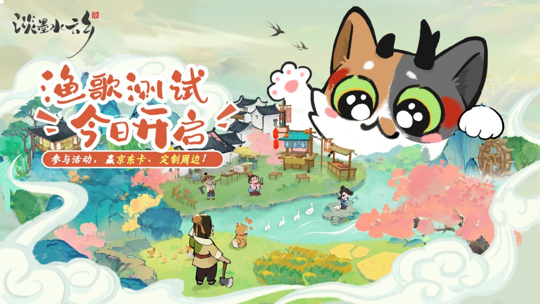在评论区晒出你的《淡墨水云乡》渔歌测试游赏截图,并预约《淡墨水云乡》手游,就有机会赢取京东卡,定制周边等奖励!